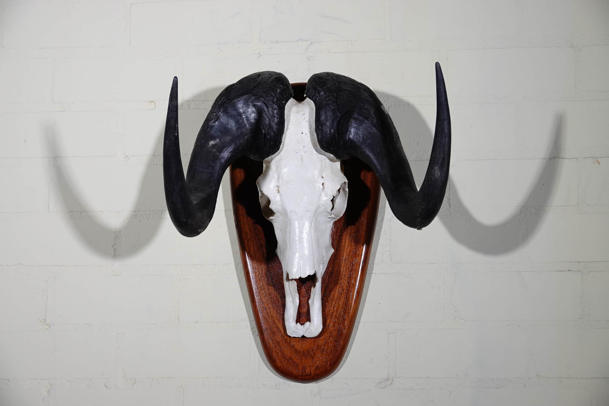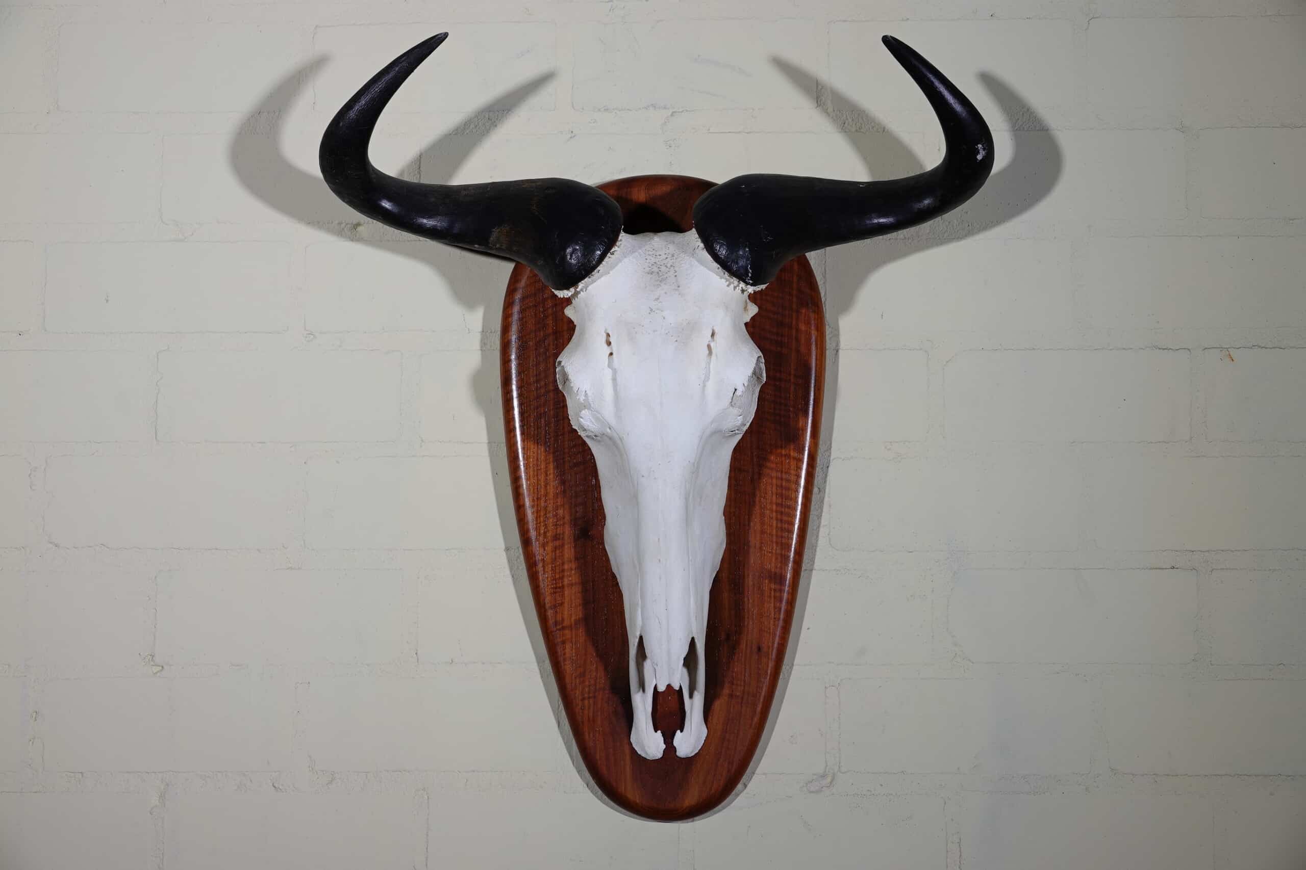schedel van een wildebeest Latijnse naam: Connochaetes taurinus Afmetingen: 56x15x66cm hoog Staat: In goede conditie, de fotos geven een goede indruk van deze mount