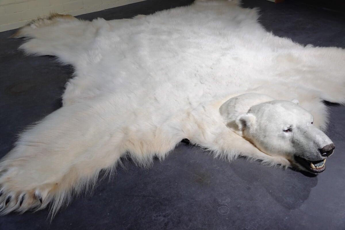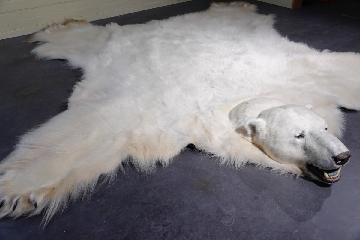 huid van een ijsbeer met opgezette kop