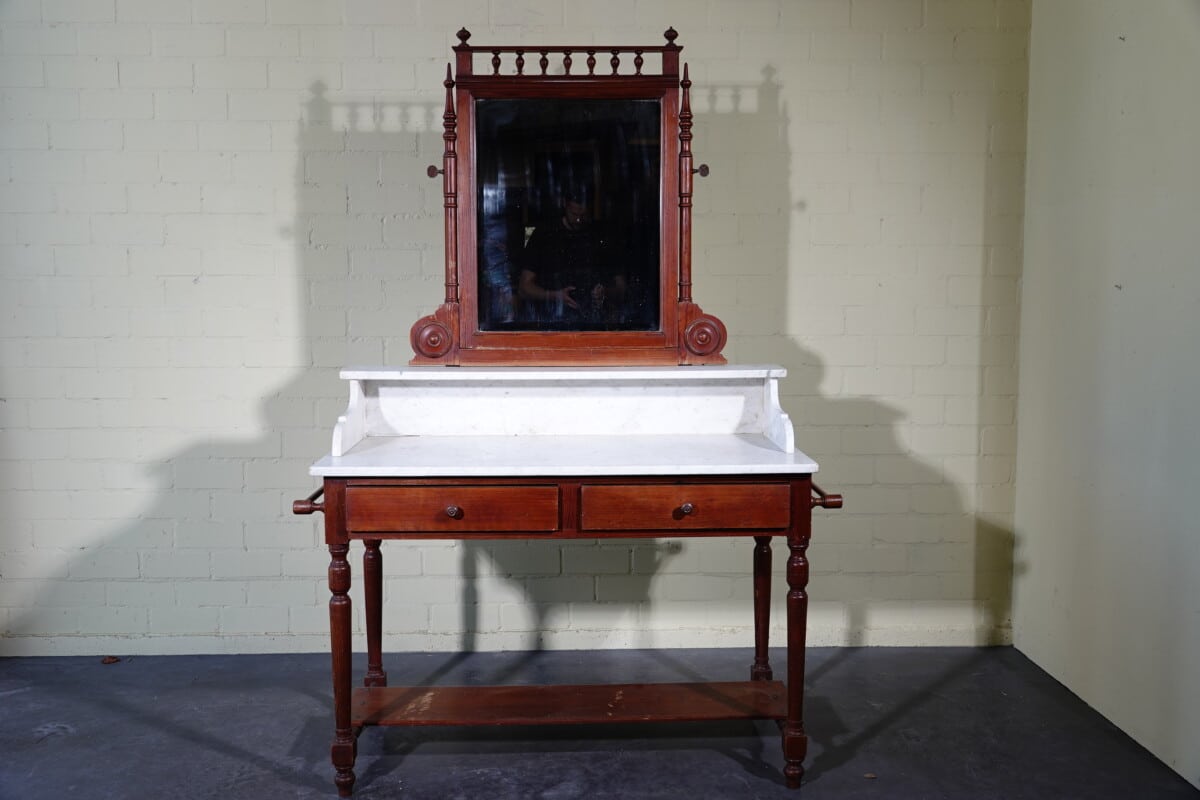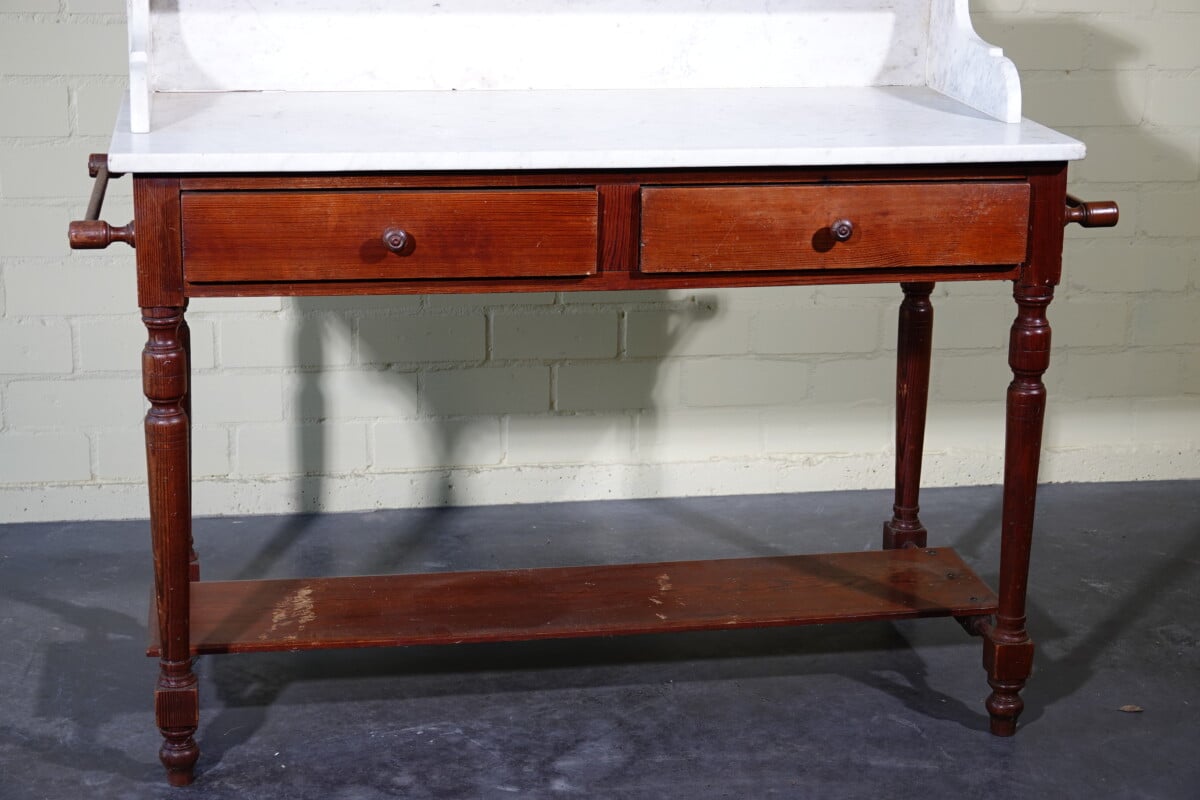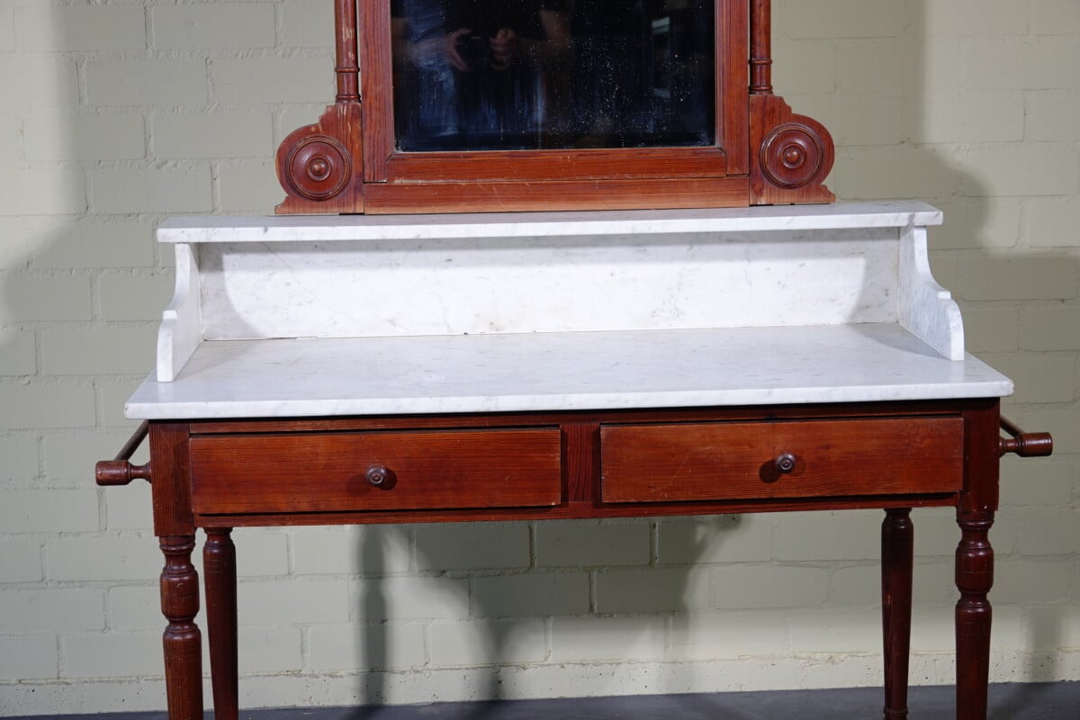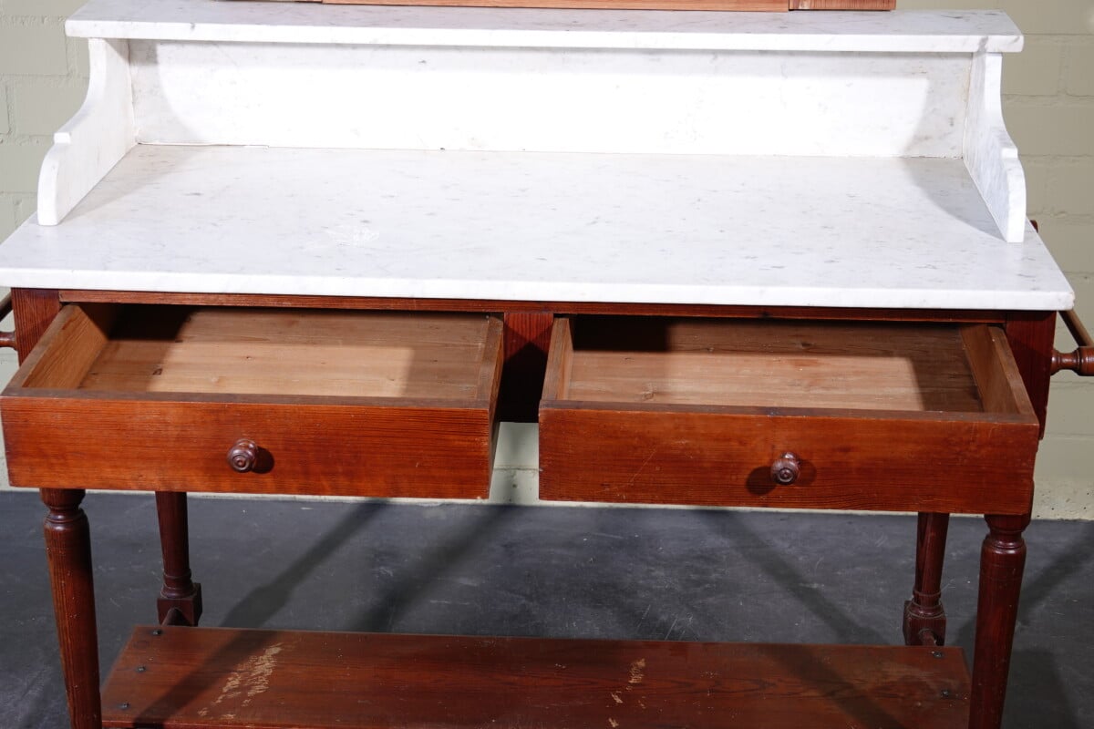 Antieke marmeren waskast / kaptafel met spiegel (ca. 1900)