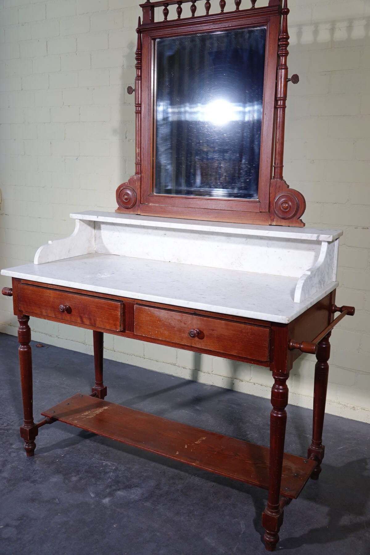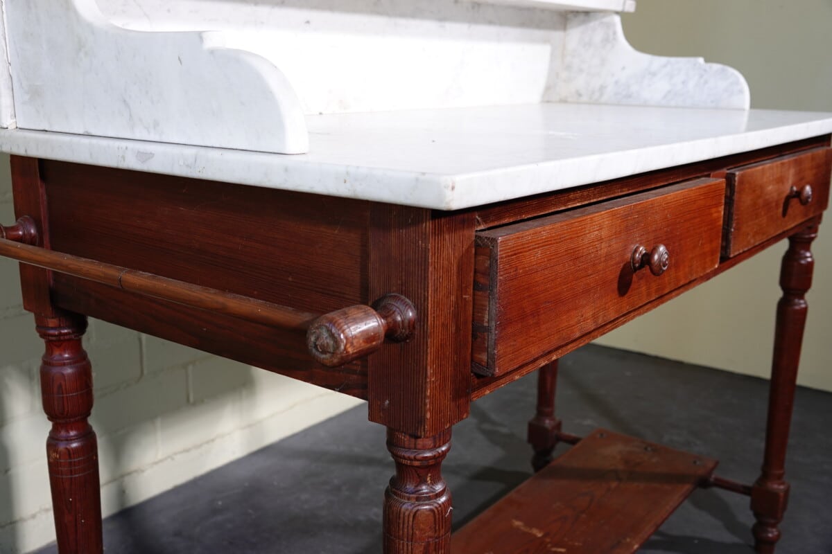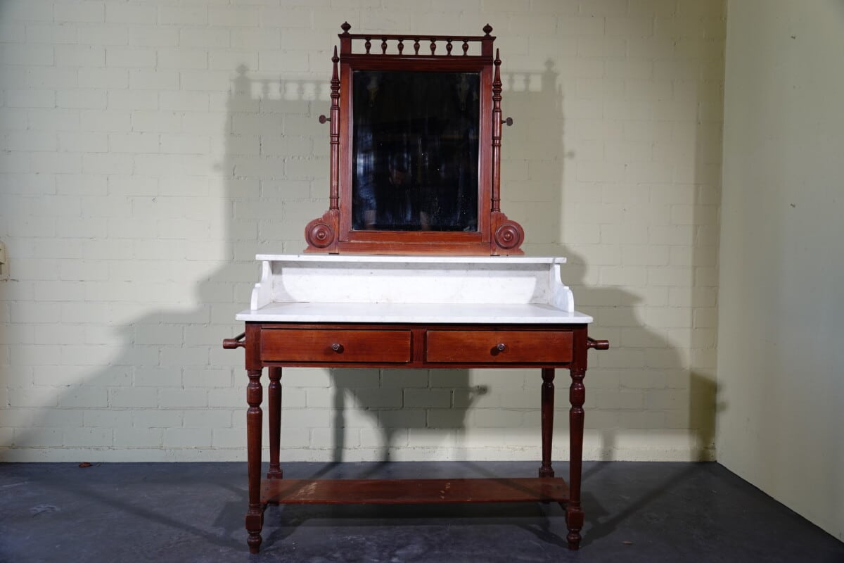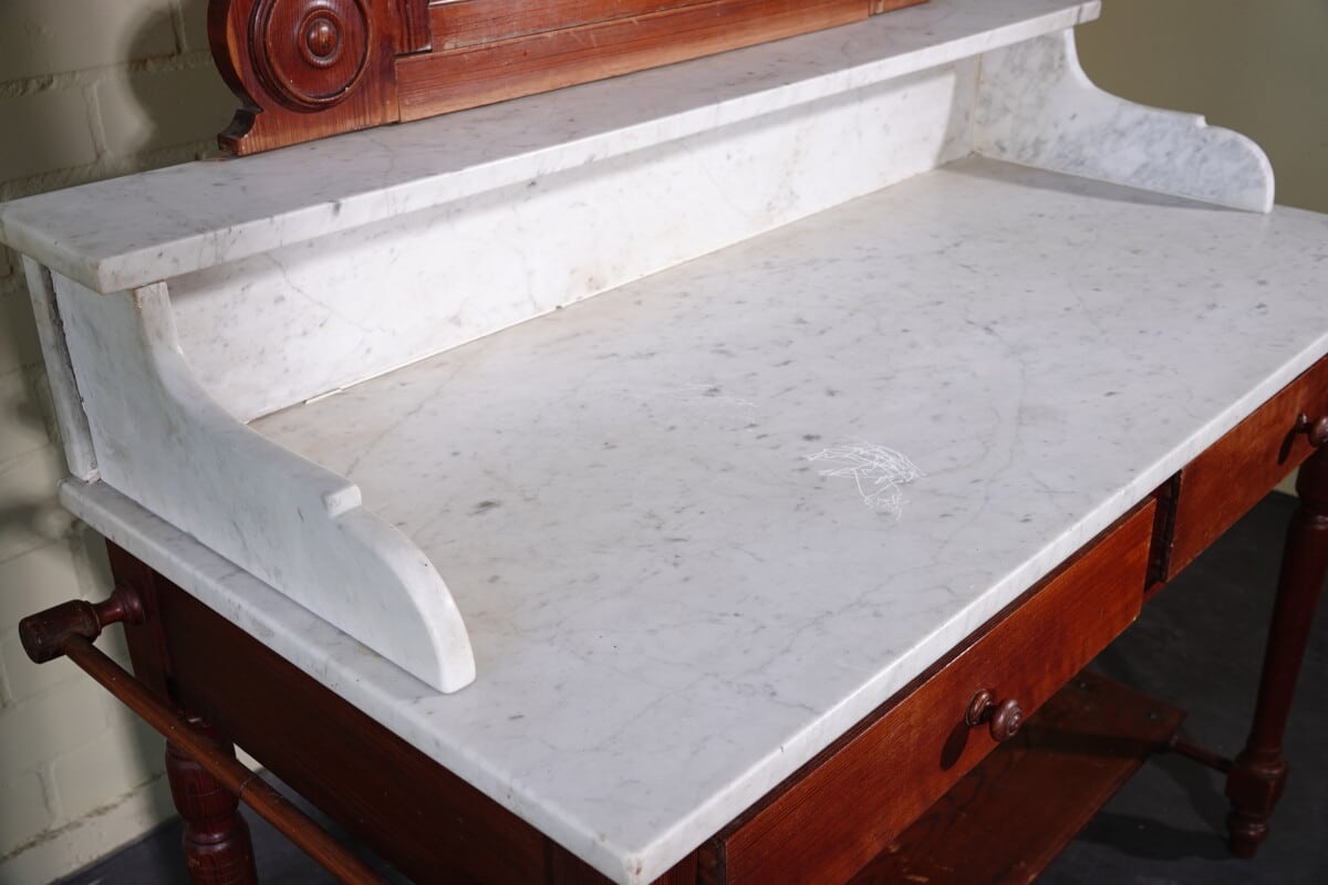 Antieke marmeren waskast / kaptafel met spiegel (ca. 1900)