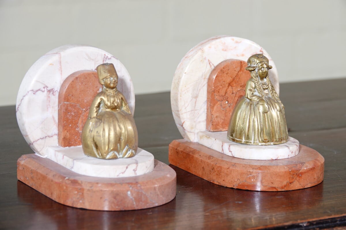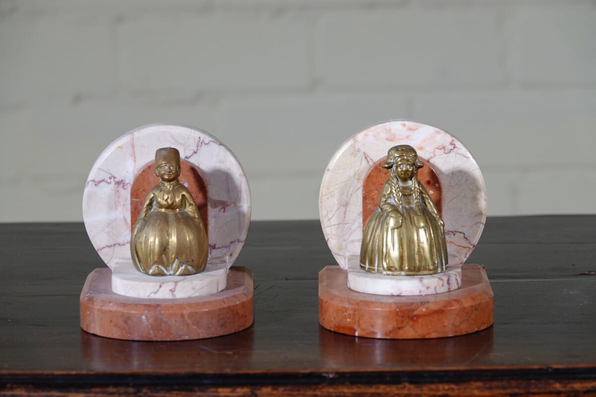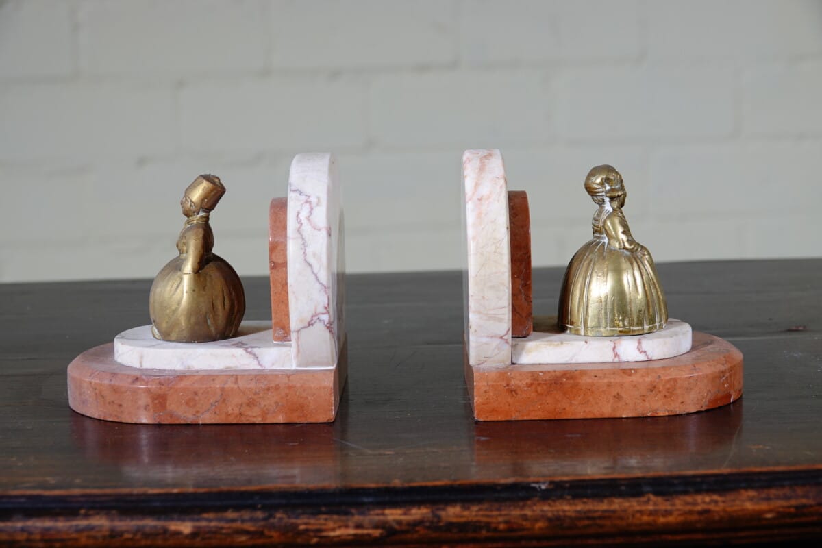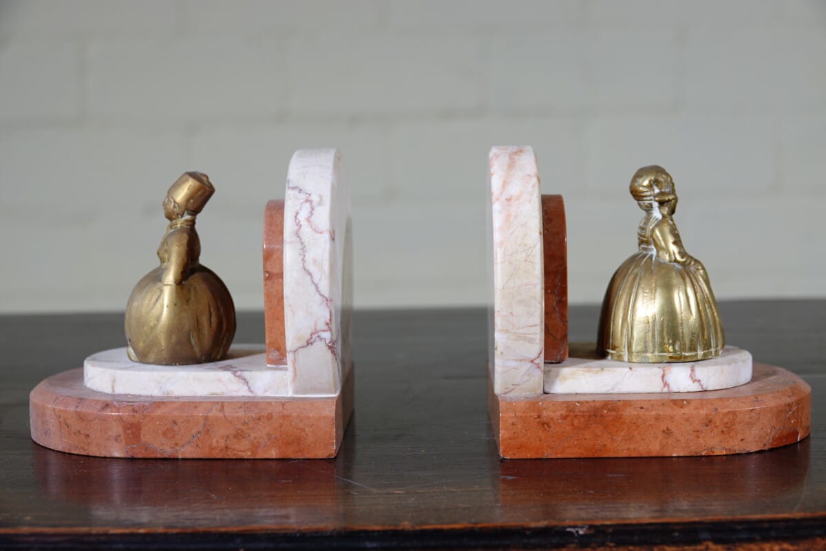 Art Deco boekensteunen marmer met messing figuren