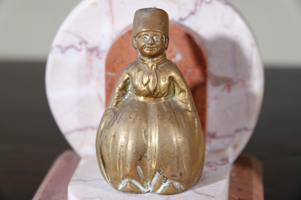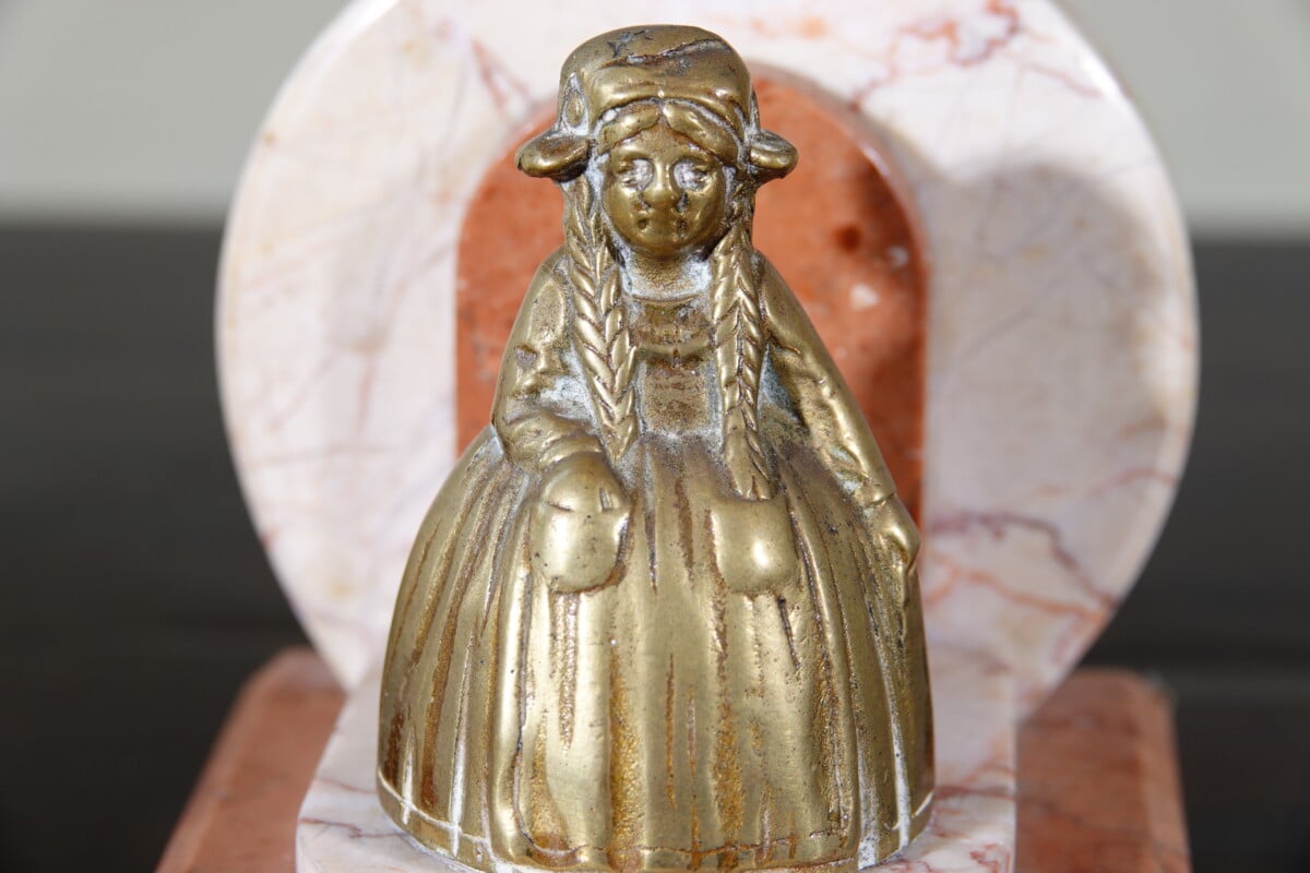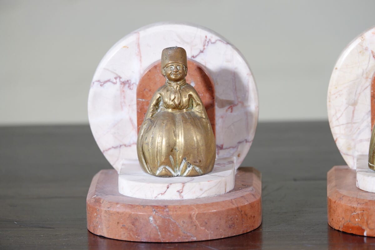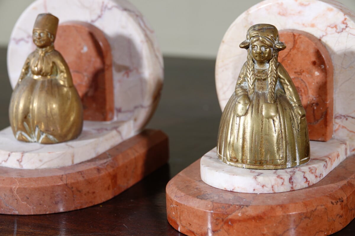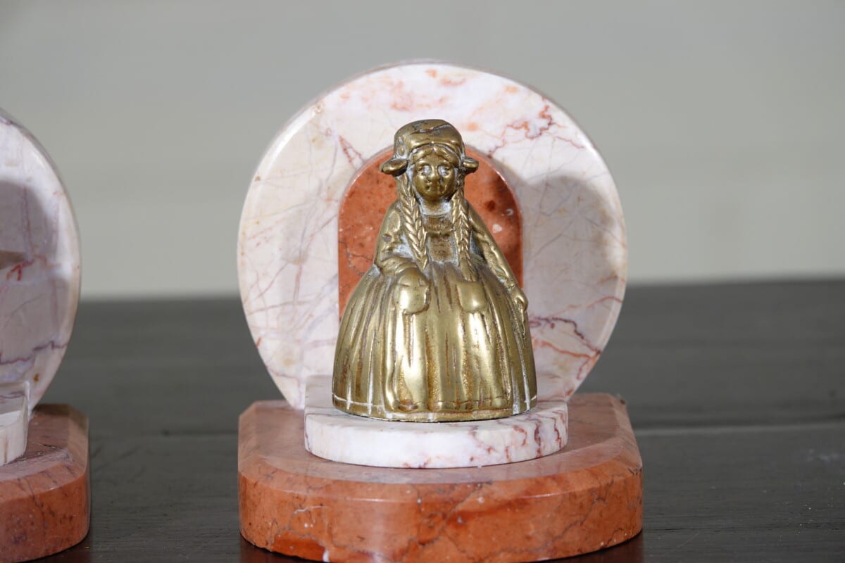 Art Deco boekensteunen marmer met messing figuren