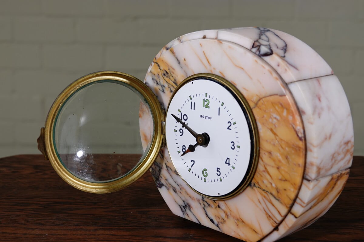 Art Deco marmeren/alabaster tafelklok aantal