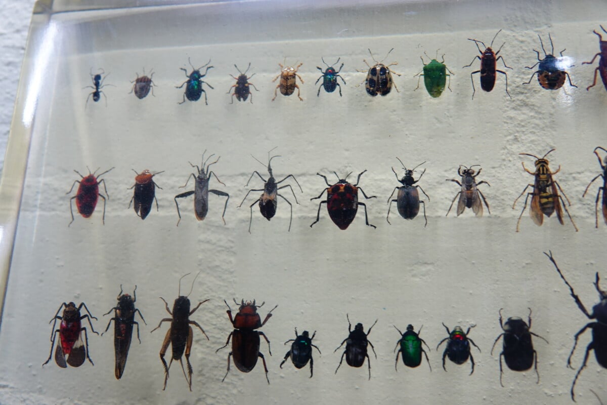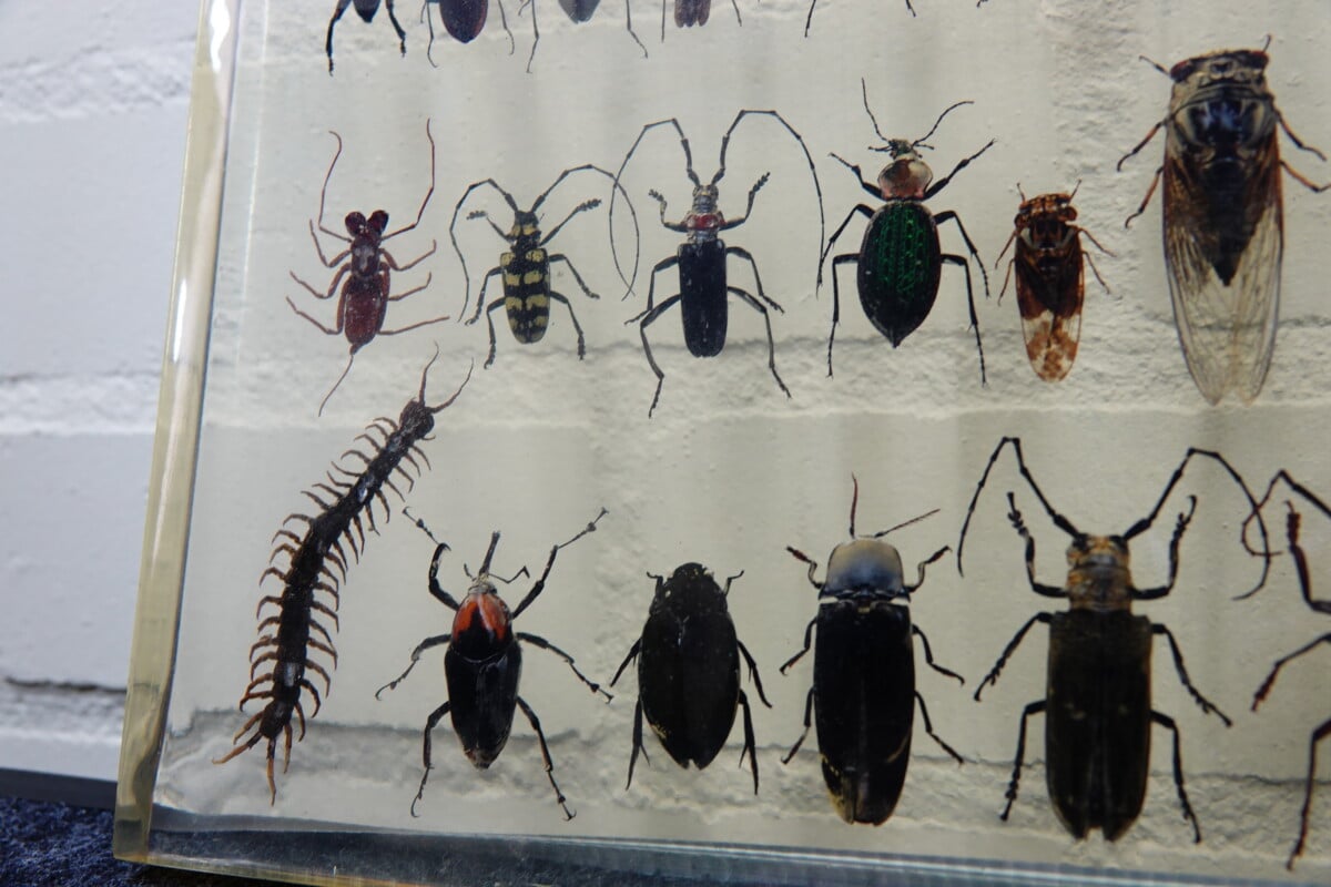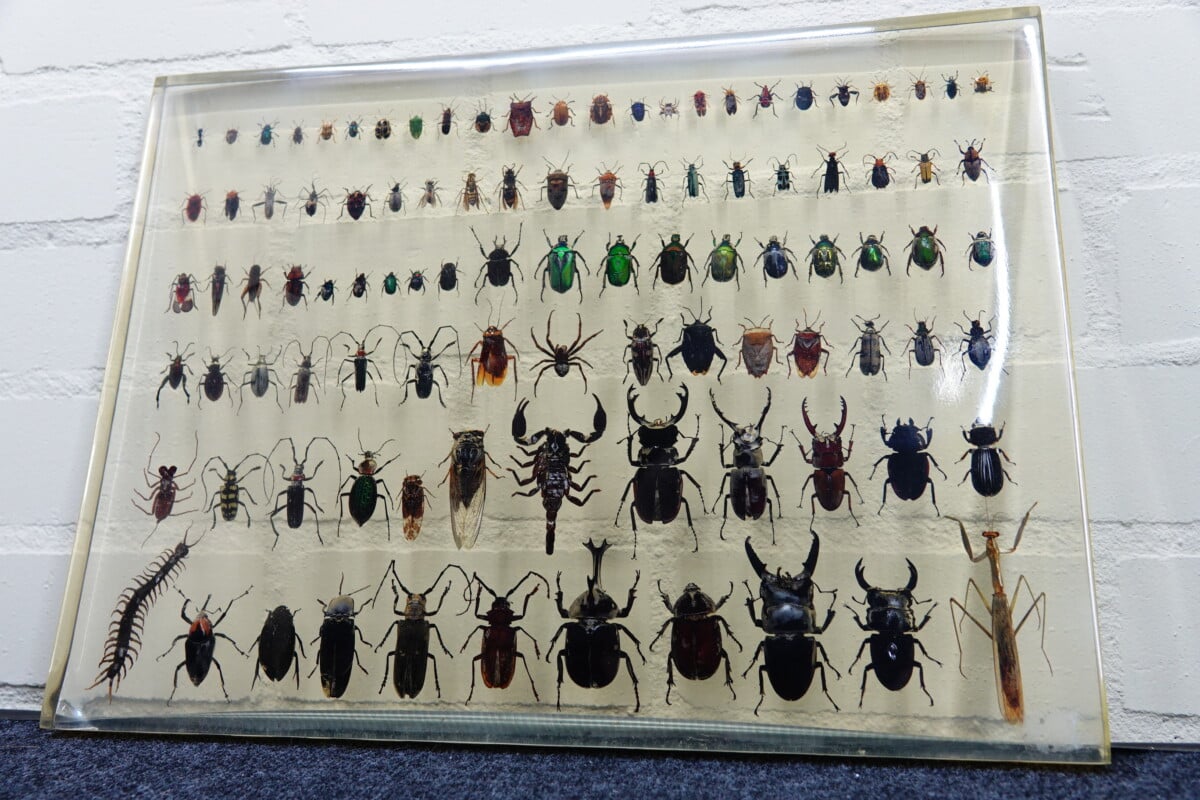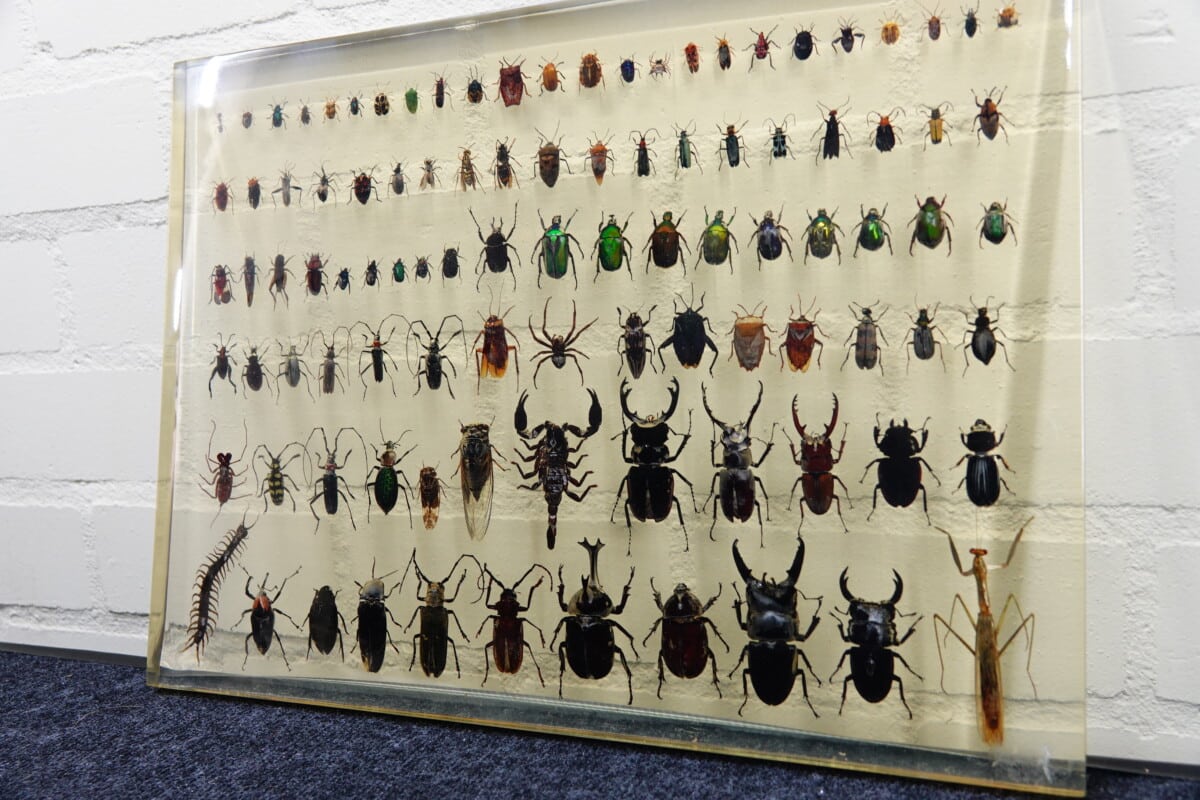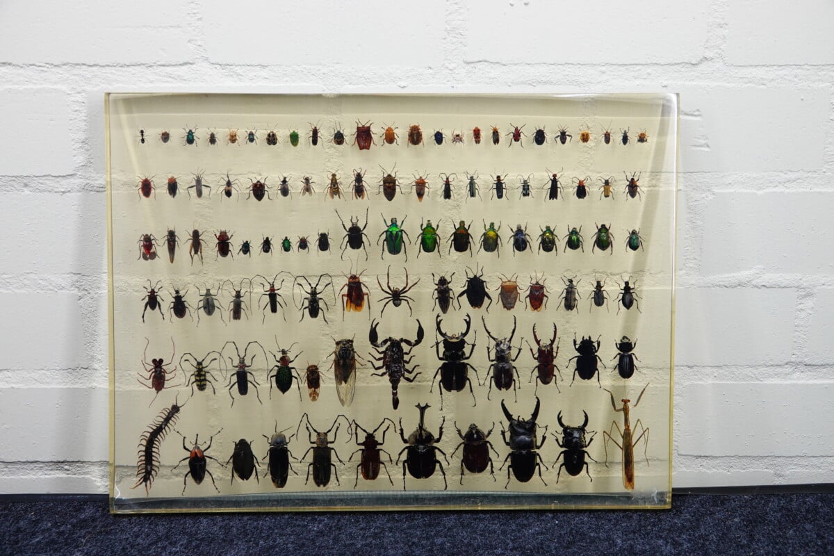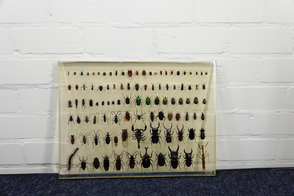 grote plaat met insecten in hars