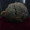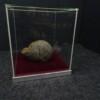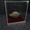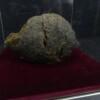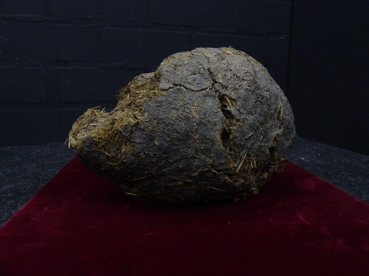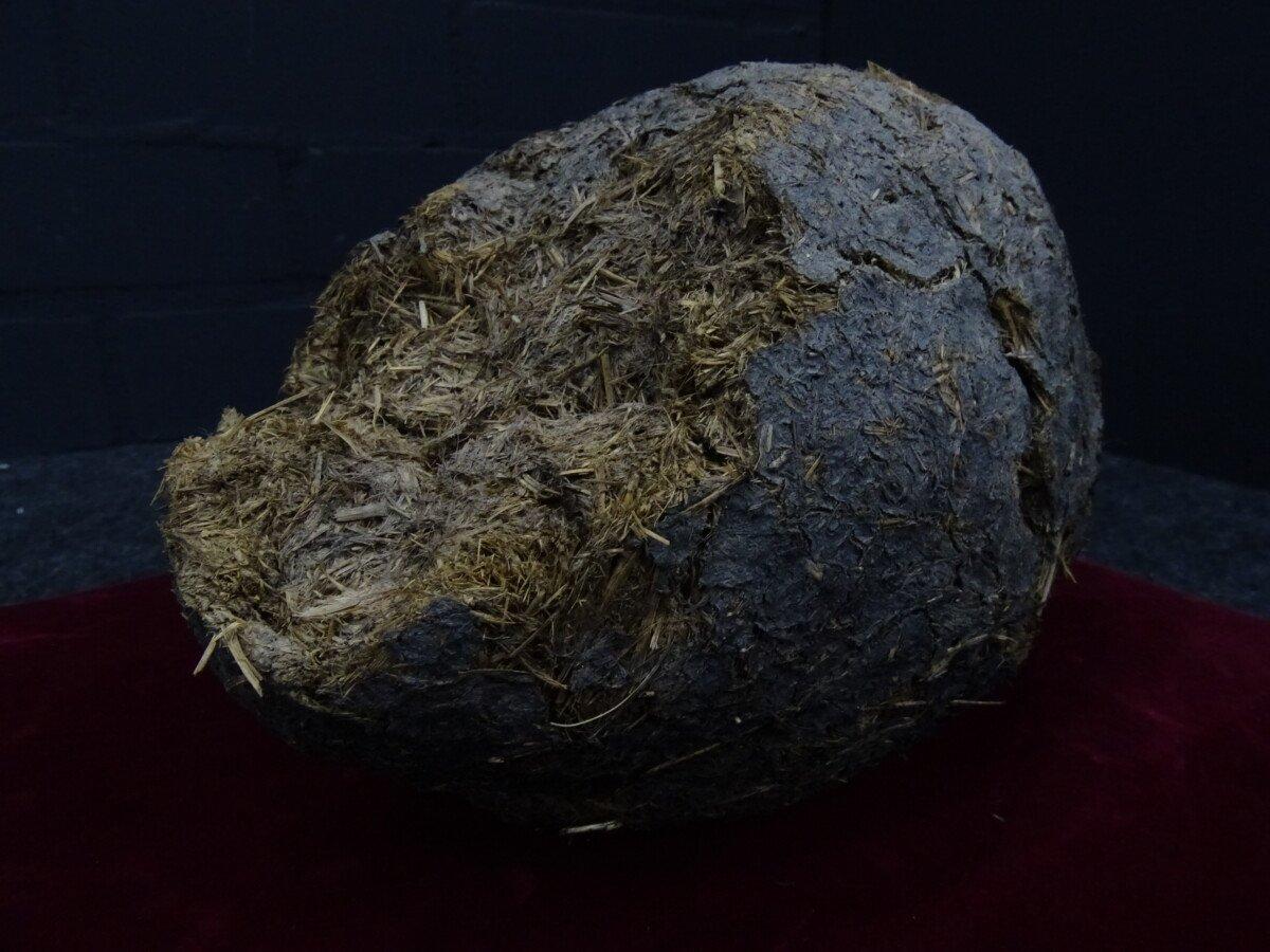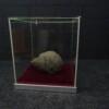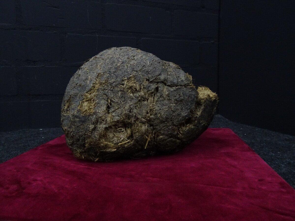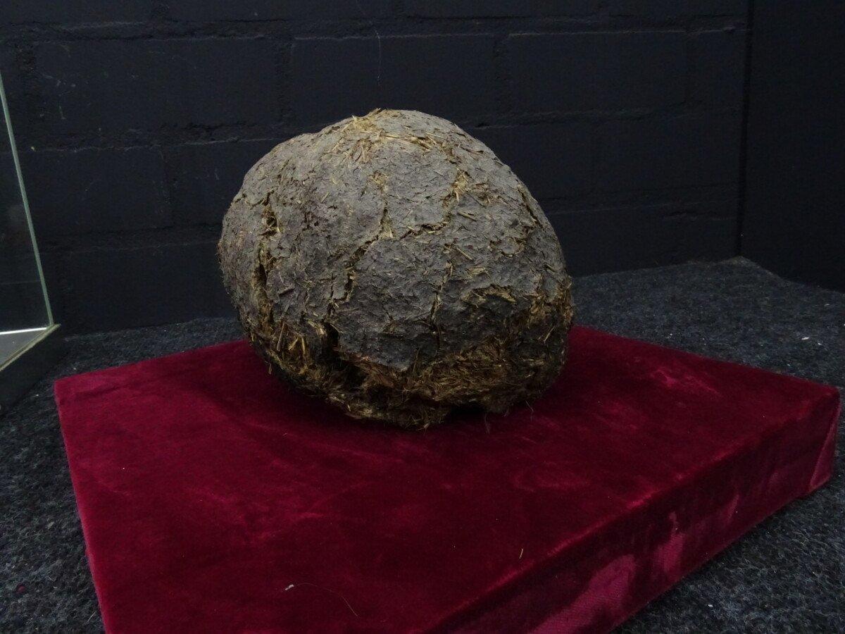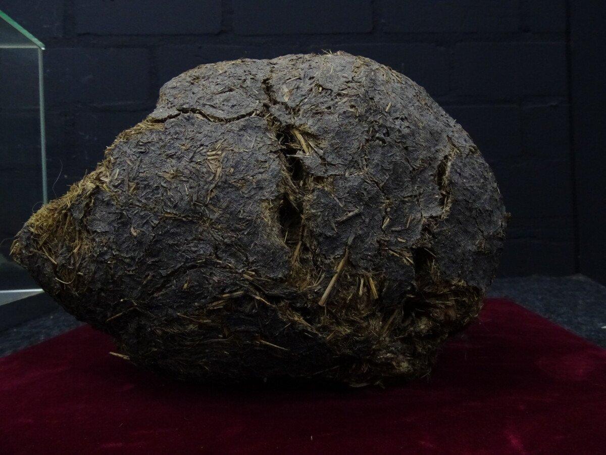 Neushoorn drol in glazen vitrine