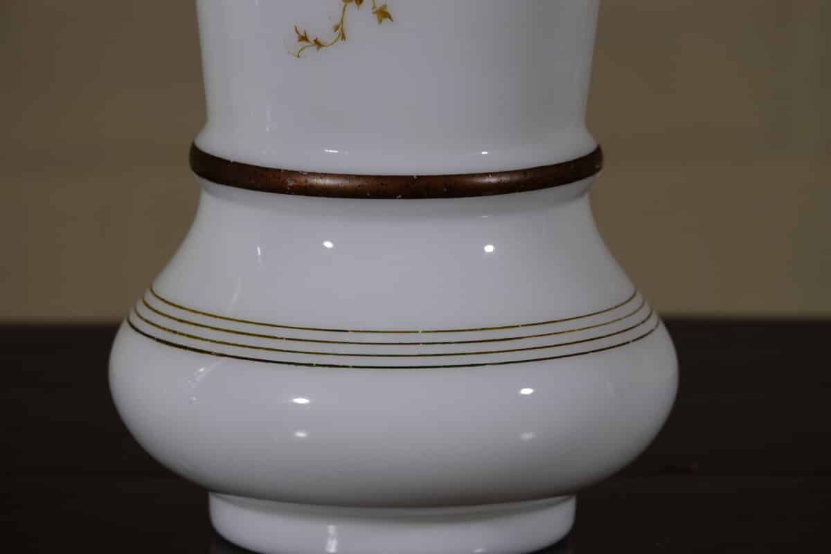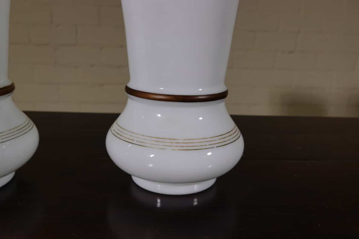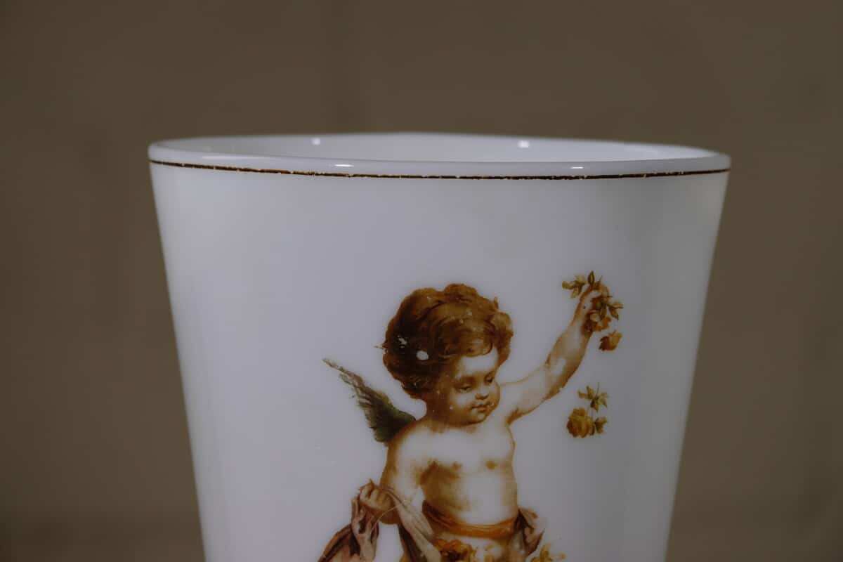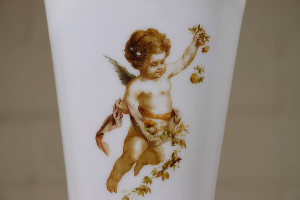 “Paar opaline glazen vazen met cherub decor, ca. 1900