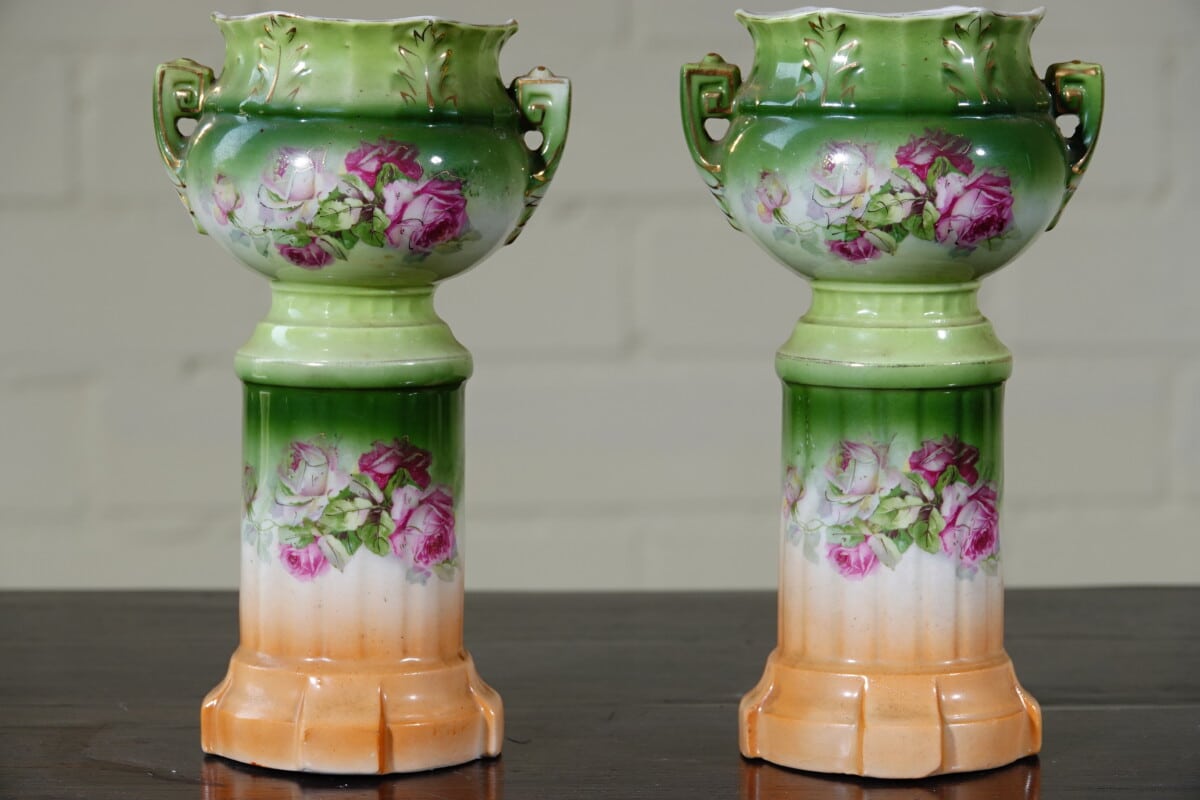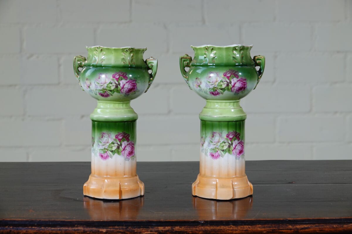 Set van 2 Oostenrijkse vazen – rozen decor – Art Nouveau